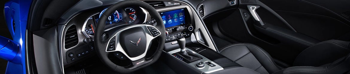 The Corvette features a driver-oriented cockpit with a flowing design and premium materials. Standard GT bucket seat provides excellent support, while available Competition Sport seats feature pronounced side bolsters for extreme cornering.